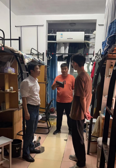 在常态化走访宿舍过程中,学工人员亲切地与学生进行交流,认真听取学生的意见和建议,提醒学生要提高安全意识和防诈骗意识,遵守宿舍纪律,整理好内务和卫生。针对部分宿舍存在空调内机漏水、床板松动等问题,学工人员现场指导学生进行在线报修。