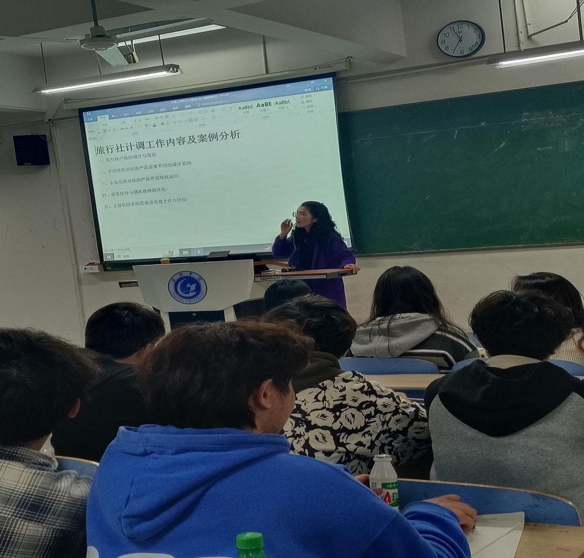讲座过程中,同学们认真听讲、踊跃发言、积极提问,徐韵玲总经理耐心细致给予解答,现场气氛热烈。整场讲座持续了近两个小时,讲座内容丰富精彩,语言幽默诙谐、很有感染力。特别是徐韵玲总经理结合自己三十余年的从业经历和经典案例,很好地补充了《旅行社经营管理》课程的理论和实践内容、为同学们今后的课程学习和未来从事旅游行业的工作打开了一个更宽的视野。(文、图/曹传兰 初审/朱学同 终审/雷若欣)