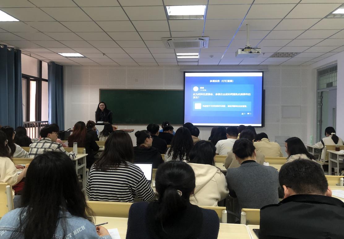 本次教学观摩课由学校第十二届青年教师教学基本功竞赛文科组一等奖获得者、教工二支部党员曹睿老师主讲,主讲课程为《参展实务》。曹睿老师以“上海宝马冰淇淋事件”为导入,分析了展台工作人员应具备的知识和能力。曹睿老师教学仪态大方自然、教学过程流畅、思路清晰,并且综合运用了案例分析、小组讨论、智慧教学等多种教学方法,课堂气氛活跃,教学效果良好。