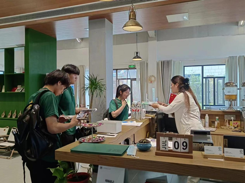 在烔炀镇凤凰村“凤凰集.凤栖梧”民宿,民宿工作人员向实践团队员介绍,“凤凰集.凤栖梧”民宿在建筑形式上,保留了原凤凰乡老供销社、老卫生院、老大礼堂及凤凰小学原有的建筑肌理和建筑风格,体现了现代审美与传统乡村的完美结合,她表示:“此民宿利用合肥市巩固拓展脱贫攻坚成果同乡村振兴有效衔接资金,共建设三期,通过文旅产业带动当地村民的相关产业,实现增收致富。”在调研时,乔浩浩及团队为民宿的发展提供方案建议,包括提升服务质量、丰富体验活动、加强营销推广等,为民宿产业的转型升级提供思路。