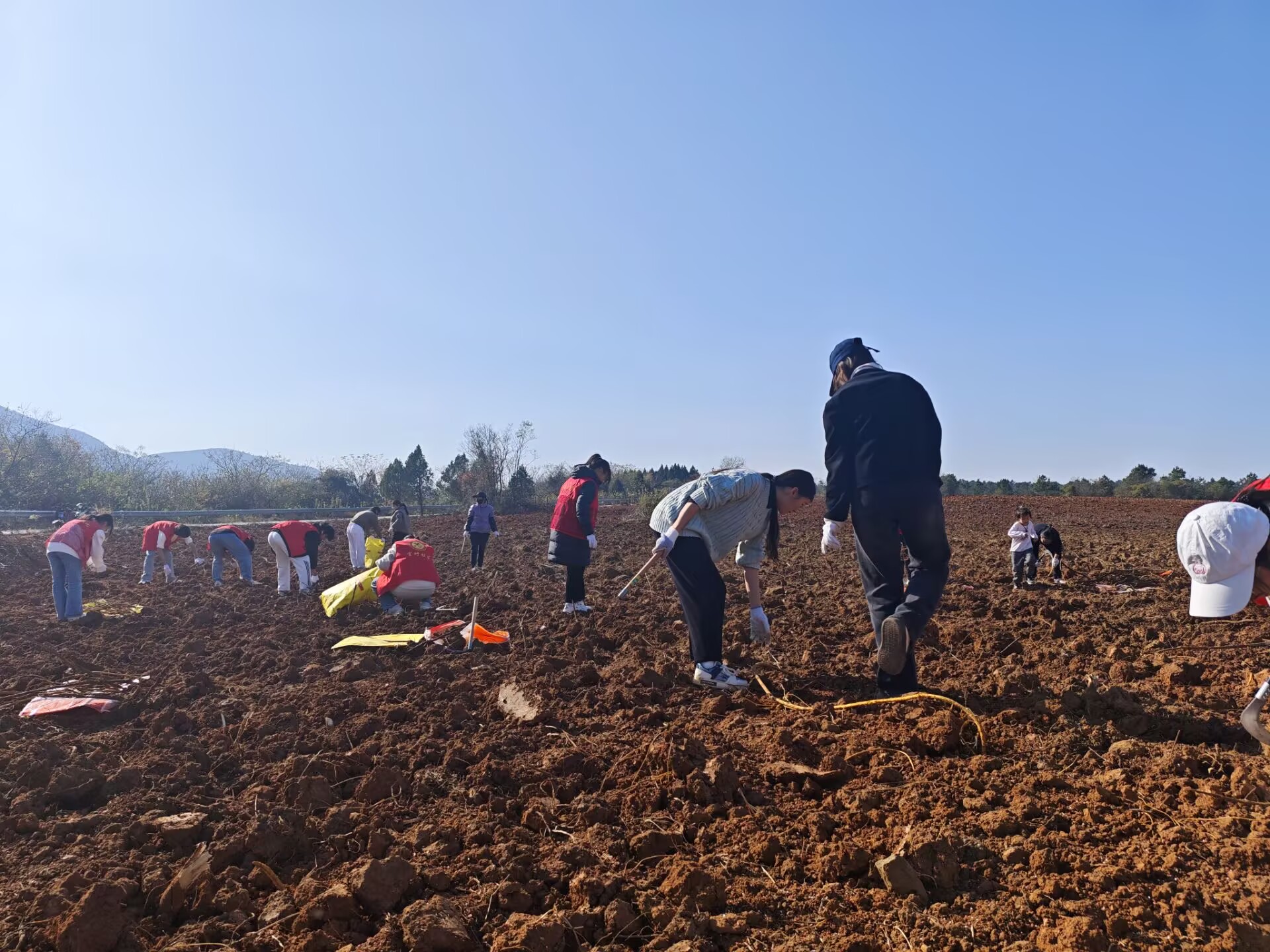 活动现场,志愿者们投身到荒地复垦各项工作中。面对荒地上的杂草,成员们弯下腰,细致地进行拔除,经过艰辛劳作,原本杂草丛生的地块逐渐变得整洁,散布在荒地中的石头在大家齐心协力下也清理干净。除此之外,成员们还不忘清理周边的垃圾,让整个区域的环境焕然一新。
