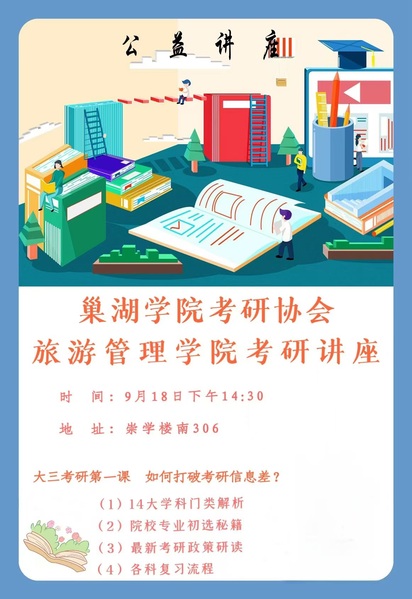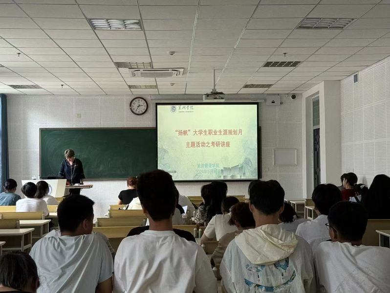 9月18日,结合第八届“扬帆”大学生职业生涯规划月系列活动,旅游管理学院邀请校外专家来学院开展考研讲座活动,来自2021级、2022级部分同学参加了讲座。