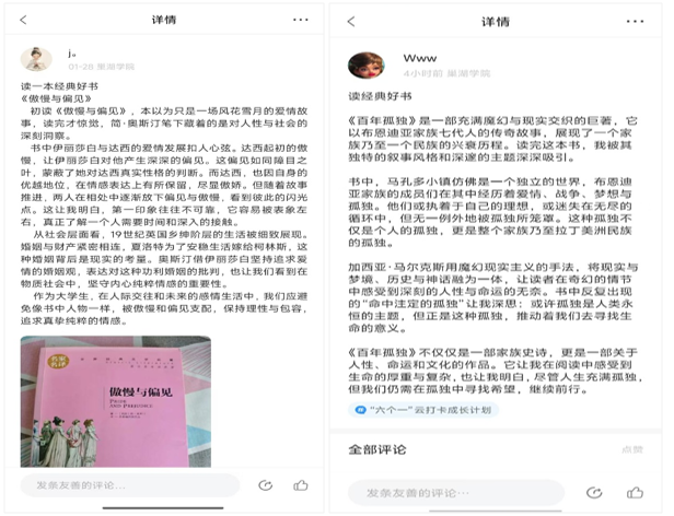 溯源经典,赓续文化薪火。假期里,各年级专业学子从《awc777万象城娱乐官网大学生必读书目(100本)》中挑选经典书目,以线上打卡形式阅读各类典籍,深入剖析作品,汲取精神力量,为新学期注入活力。