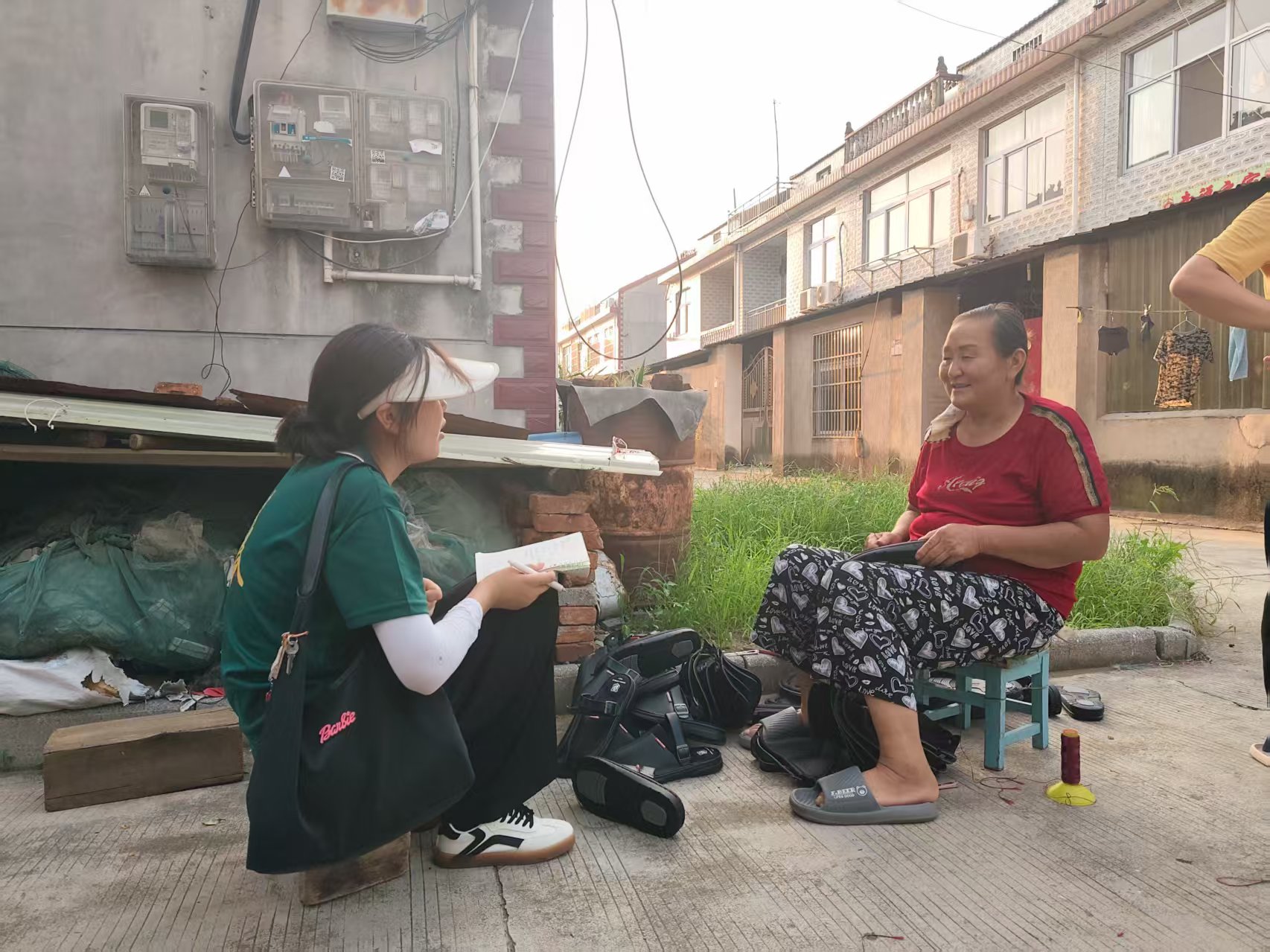 7月4日,调研团队走进龟山公园下朱村。与其他地方不同,这里的退捕渔民多是“兼业渔民”——过去既靠着巢湖捕鱼添补家用,也种着几分薄田维持生计。如今退捕上岸,有限的土地难以为继,转型之路便有了更多元的模样。年过半百的朱大爷便是其中一员。退捕后,他没闲着,加入了巢湖蓝藻清理的队伍。每天清晨,他和村里不少退捕的老伙计们一起,乘着小船在近岸水域打捞蓝藻,虽然活儿不轻松,但看着湖水一天天变清,朱爷爷心里踏实:“以前靠湖吃饭,现在护湖也能挣份收入,值当。”像朱爷爷这样的渔民不在少数,他们熟悉水性的优势有了新用场,成了巢湖生态保护的“生力军”。对于村里年事更高、不便外出的老人来说,手工活成了新的寄托。午后的阳光洒在村口的老槐树下,几位奶奶正围坐在一起纳鞋底、做布鞋。她们的手曾撒网、插秧,如今穿针引线也格外麻利。“做几双鞋能换点零花,邻里间搭个伴儿,日子也不闷。”一位奶奶笑着说,指尖的线团转得轻快,老手艺里藏着过日子的韧劲。没有轰轰烈烈的转型,下朱村的渔民们就在这一点一滴的摸索里,把昔日的生计技能变成了新的生活底气。无论是守护湖水的蓝藻清理员,还是指尖传情的手艺人,他们用最朴实的方式,在退捕后的土地上,慢慢铺展着安稳的日子,也让“护水”与“生活”在这片土地上有了更紧密的联结。