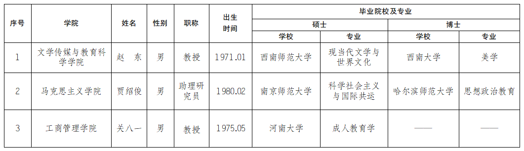 根据《awc777万象城娱乐官网引进高层次人才及团队实施办法(修订)》(校字〔2019〕146号)文件要求,经考核,拟录用赵东等3人,现予以公示。公示时间为2021年6月24日至2021年6月30日。公示期间如有异议请与人事处、纪委办反映(电话:0551-82362063 82360369)。