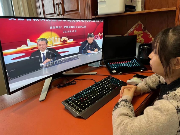 为深入学习宣传贯彻党的二十大精神,深刻领会党的二十大报告的重大意义,根据校工会部署安排,12月9日,文学与传媒学院工会以线下集中学、线上自学等形式组织观看安徽省教科文卫体系统劳模党代表、安徽师范大学教授路炳辉线上宣讲党的二十大精神活动。