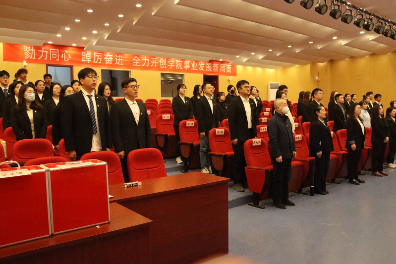 大会号召全体党员和全院教职员工要紧密团结在以习近平同志为核心的党中央周围,全面深入贯彻落实立德树人根本任务和学校党委、行政的各项工作要求,坚守育人初心,强化责任使命,勠力同心,踔厉奋进,全力开创学院事业发展新局面!为把学校建成特色鲜明的地方应用型高水平大学贡献生环力量!