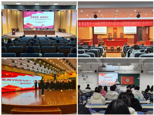 为学习宣传贯彻党的二十大精神,推动全面贯彻实施宪法,经济与法学学院以习近平法治思想为指导,以“12·4宪法日”为契机,充分运用现代信息技术,不断创新活动形式载体、丰富教育方法手段、拓展普法宣传新阵地,开展第九届12·4国家宪法日“宪法晨读”活动、“宪法日普法之政协知多少”活动、组织举办扫黑除恶、反有组织犯罪法、《宪法》和《民法典》知识讲座、“宪法手中抒,宪法记心头”卡片制作活动、“‘宪’在开始,与法同行”微视频活动、“法治进社区,传习在行动”等教育引导学生们自觉遵守法律法规,着力培育学习宪法、尊崇宪法的校园法治文化,切实提升宪法教育的影响力和感染力,推动宪法真正走入广大师生日常生活。