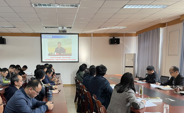 11月2日下午,电子工程学院在会议室先后召开党委理论学习中心组会议和全体教职工会议,学习宣传贯彻党的二十大精神。会议由党委副书记孔鲲鹏主持。