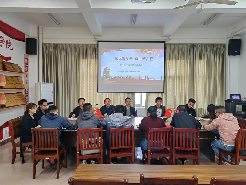 党的二十大的胜利召开催人奋进,激荡人心。为深入学习领会党的二十大精神,全面贯彻习近平新时代中国特色社会主义思想,进一步强化教工党员党性教育,经法学院教工第三党支部于10月25日上午在求实楼三楼会议室开展“学习二十大,永远跟党走,奋进新征程”主题党日活动。本次活动采取线上+线下方式举行,活动由支部书记林天水主持。