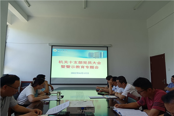 6月17日上午,机关党委第十党支部在后勤处会议室召开党员大会暨警示教育专题会议。会议由支部书记张蕊同志主持,支部全体党员参会。