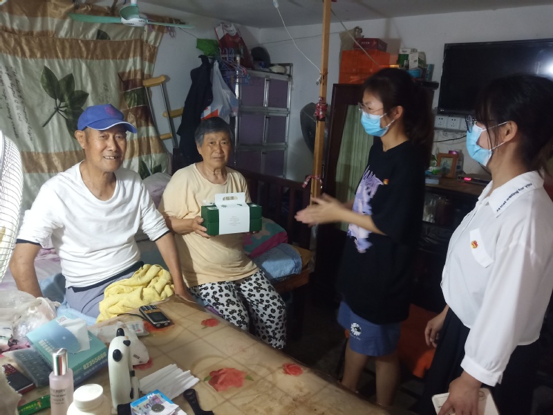 活动最后,同学们亲自将打包好的青团分发给社区里的老人,为他们送去节日的深情慰问,希望老人们度过一个舒心安康的端午佳节。