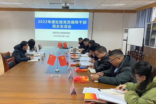 根据学校党委部署,数学与大数据学院党委于2月10日上午在笃行楼二楼会议室召开2022年度处级党员领导干部民主生活会。教务处处长朱明、秘书李慧玲一行到会指导。会议由学院党委书记史国东主持,学院党委、行政班子成员、科级干部、党支部书记、教师代表等参加会议。