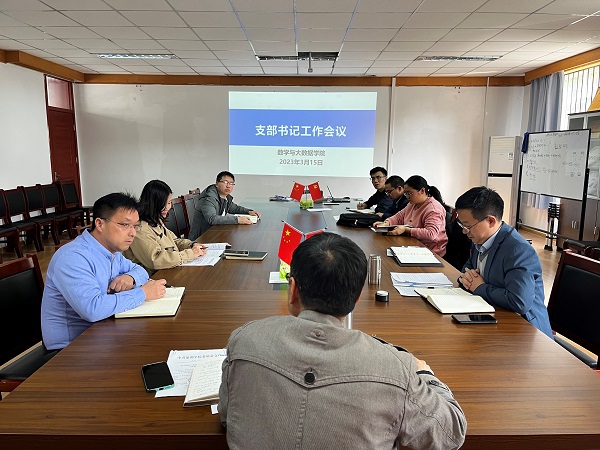 为全面学习贯彻党的二十大精神,认真落实党的基层组织建设要求,提升党建工作质量水平,数学与大数据学院于3月15日下午在笃行楼会议室召开支部书记专题工作会议,会议由学院党委书记史国东主持,副院长陈佩树、副书记郝江锋及全体基层党支部书记、副书记参会。