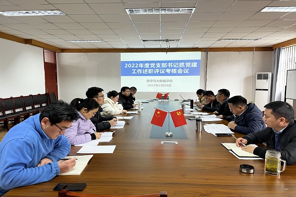 为深入贯彻落实党的二十大精神,不断提升基层党建工作质量,进一步压紧压实党组织书记抓党建主体责任,数学与大数据学院于2月28日上午在笃行楼会议室召开2022年度党支部书记抓党建述职评议会。会议由分党委书记史国东主持,副院长陈佩树、副书记郝江锋、副院长彭维才及党委委员、科级干部、各党支部书记和副书记参会。