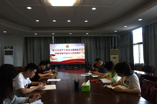 为深入开展学习贯彻习近平新时代中国特色社会主义思想主题教育,认真落实教育部和安徽省关于加强教师队伍特别是师德师风建设部署要求,5月29日上午,机关党委学生工作部党支部开展理论学习暨师德师风建设分析研判会。