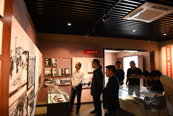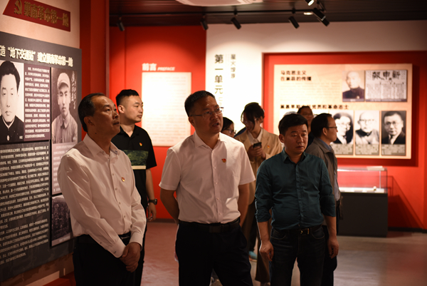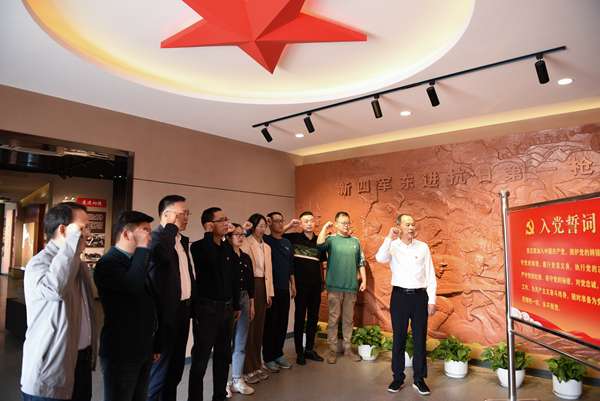 走进三胜村新四军东进抗日第一枪纪念馆,全体党员在一幅幅珍贵的照片、一件件珍贵的实物、一幕幕逼真再现的场景前驻足观看,身临其境地感受新四军第4支队在蒋家河口进行的伏击战战况,对当年新四军东进抗日首战歼敌告捷的历史功绩,对革命烈士的英雄事迹和红色革命精神有了更深刻的认识,激发了情感共鸣。随后,全体党员在宣传部党支部书记张连福的带领下,重温入党誓词。全体党员高举右手庄严宣誓,一句句铮铮誓言,是担当、是责任,是心之所向、是行之所往,铿锵有力的声音在耳边久久回响,党员们的初心受到洗礼,理想信念更加坚定。