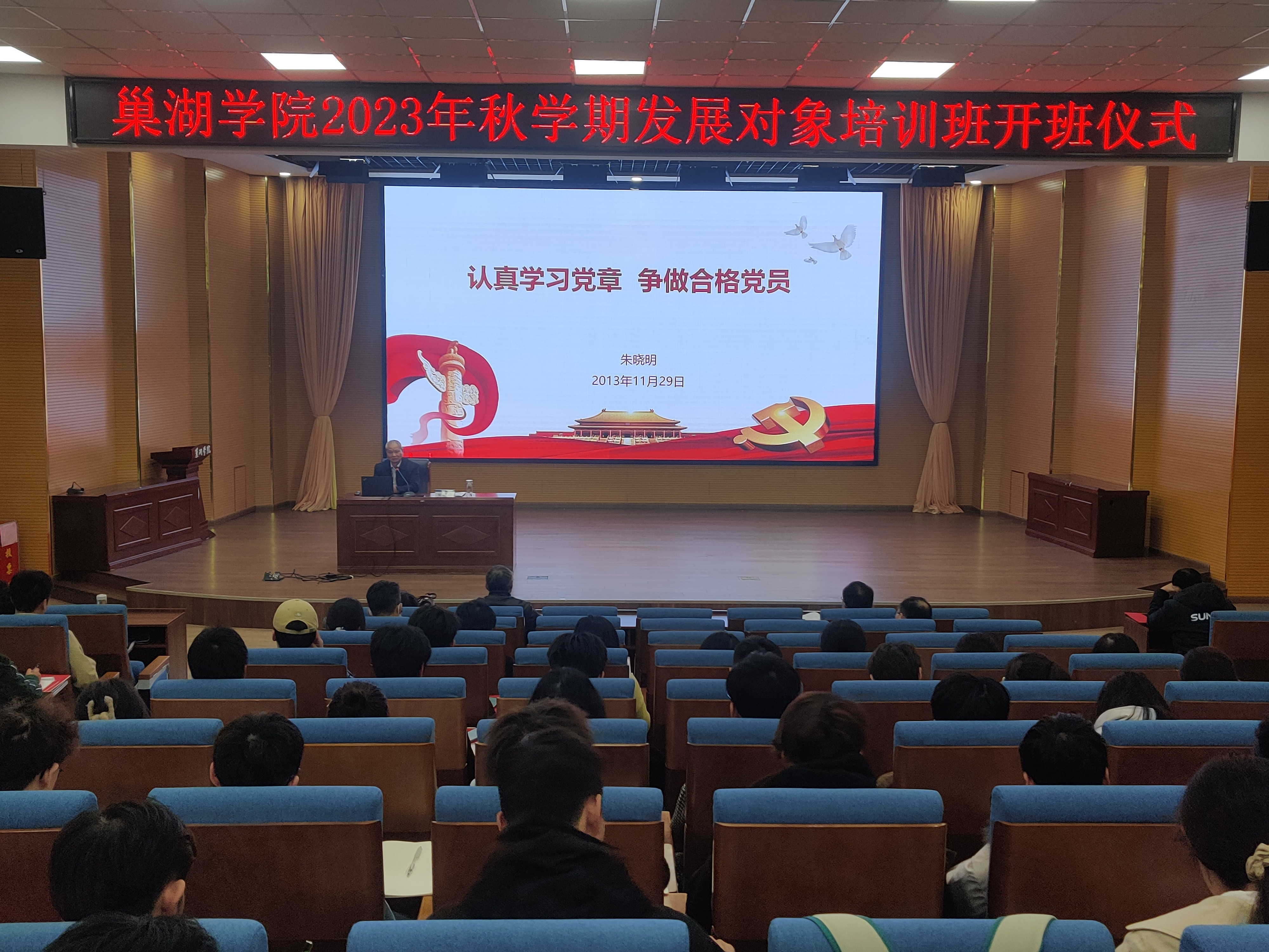 为进一步学习贯彻习近平新时代中国特色社会主义思想,全面贯彻党的二十大精神,深入落实新时代党的建设总要求和新时代党的组织路线,做好新时代党员发展和教育工作,11月29日,awc777万象城娱乐官网在求实楼报告厅举行2023年秋学期发展对象培训班开班仪式暨首场专题报告。校党委委员、党委组织部部长、校党委党校常务副校长柯应根,各二级学院组织员、培训班班主任、学生党支部书记代表、学校2023年度“优秀共产党员”代表等出席开班仪式,全体参训学员参加开班仪式,仪式由校党委党校秘书周玉主持。