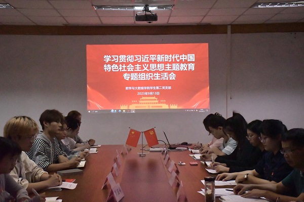 9月13日下午,数学与大数据学院学生第二党支部在笃行楼203会议室召开学习贯彻习近平新时代中国特色社会主义思想主题教育专题组织生活会,会议由支部书记谢乙莹主持,学院党委书记史国东到会指导,支部全体党员参加会议。