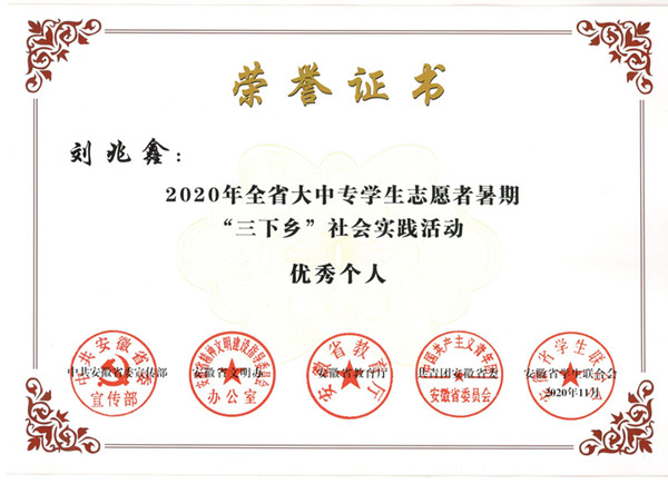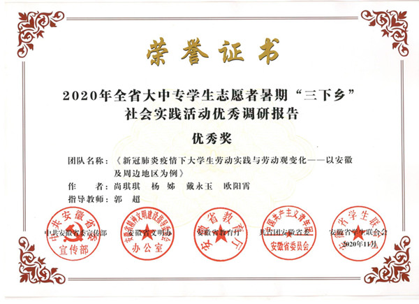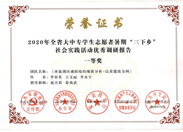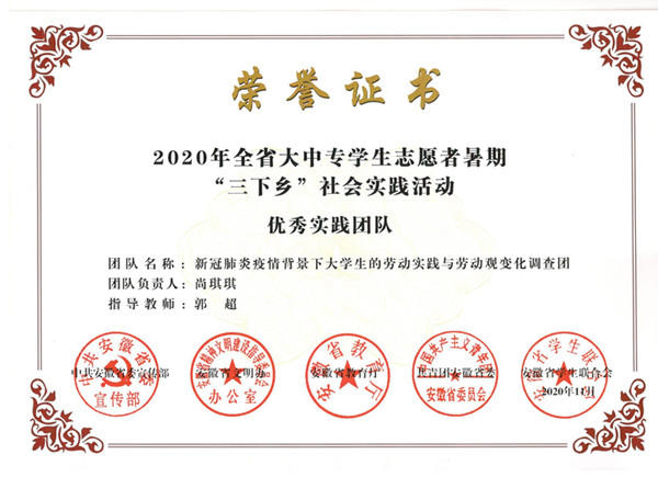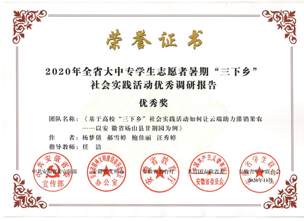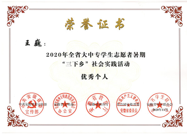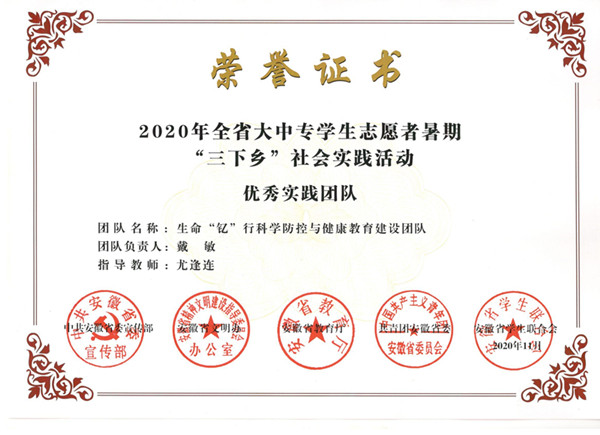 2020 年安徽省大中专学生志愿者暑期“三下乡”社会实践
