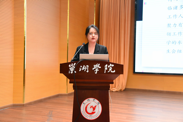 会上,校学生会主席团成员尤佳术作题为“踔厉奋发新时代 勇毅前行谱新章 为加快建成特色鲜明的地方应用型高水平大学贡献青春力量”交流发言,主要从“下沉组织力量,坚持精干高效”“淬炼思想理论,凝聚奋进之力”“围绕学校大局,提升服务效能”“重任倍道兼行,前路愿景可成”等四个方面,全面总结回顾校学生会2022-2023学年的工作。