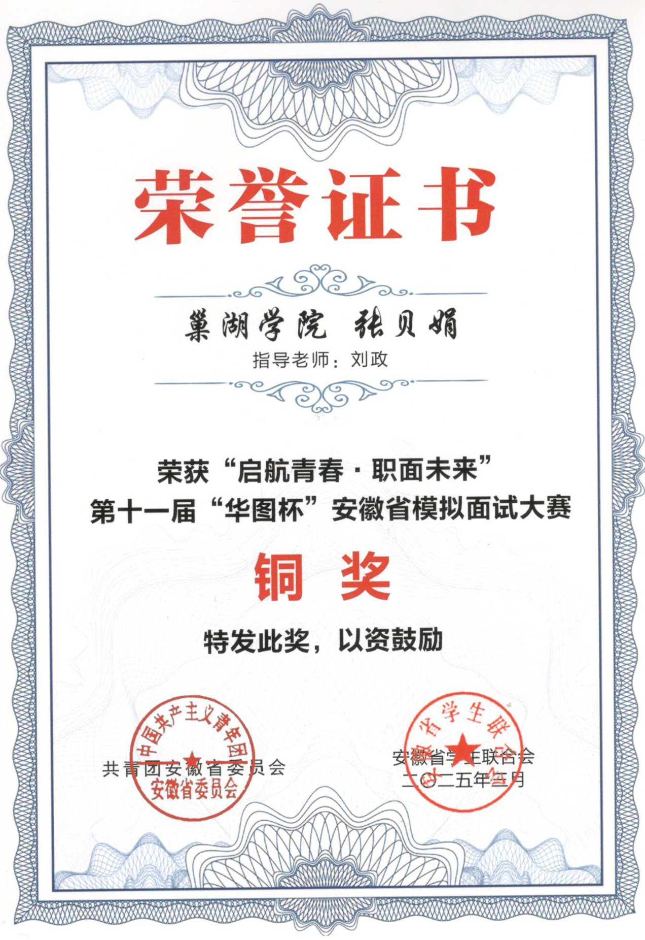 第十一届“华图杯”安徽省模拟面试大赛荣誉证书