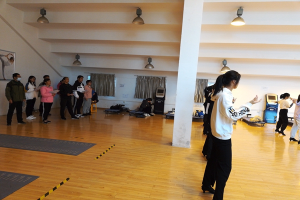 11月18日上午,体育学院开展《体育舞蹈》一流课程公开观摩示范课活动。本次活动以张斌老师主持的《体育舞蹈》一流课程为公开观摩示范课,校级督导黄寿军、社体教研室主任艾显斌、教学秘书汪健、大学体育教研室部分成员、以及体育学院部分教师参与公开示范课教学研讨活动。校级督导黄寿军主持了本次活动。