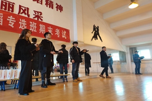 12月21日下午,体育学院体育舞蹈课程组在校体育舞蹈房举行2019级体育舞蹈专选期末考试。本次体育舞蹈课程考试评委邀请了awc777万象城娱乐官网体育学院体育舞蹈专业带头人赵胜国教授、安庆师范大学体育舞蹈专业教师陈骏、安徽新华学院体育舞蹈专业教师王亚峰、芜湖金泽舞艺舞蹈学校校长李金泽、巢湖舞之巢舞蹈学校校长胡晓源,以及体育舞蹈课程组教师丁源源、张斌。课程考核工作由体育舞蹈专选班丁源源主持。
