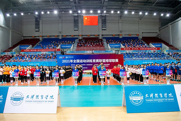 为贯彻落实中共中央办公厅国务院办公厅关于全面加强和改进新时代学校体育工作,以及国家体育总局、教育部关于深化体教融合促进青少年健康的相关工作要求,5月25日,由国家体育总局科教司、中国排球协会指导,全国运动训练竞赛联盟主办,天津体育学院承办的2021年全国运动训练竞赛联盟排球联赛,在天津体育学院体育馆开幕。共有来自全国15所高校的21支代表队参加比赛。这是我校今年获批运动训练专业后首次派队参加该项赛事。