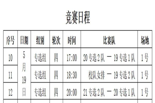 此次联赛各队积分情况与5月19日竞赛日程如下: