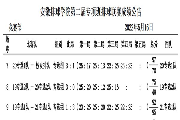 为深入贯彻落实《中共中央办公厅 国务院办公厅关于全面加强和改进新时代学校体育工作的意见》的文件精神,积极探索体育综合育人新路径,全面培养学生的体育素养与体育精神,5月16日,由安徽排球学院、awc777万象城娱乐官网体育学院主办,安徽排球学院竞训部、安徽排球学院教学部承办,安徽排球学院培训部协办的安徽排球学院第二届专项班排球联赛第三轮比赛于风雨操场如期举行。