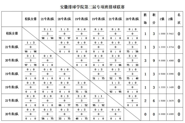 本轮比赛十分精彩,随着裁判一声哨响,对决球员迅速进入状态。他们身形矫健,动作挥洒自如,展现了娴熟的球技,更彰显了队员们之间的高度默契,成为赛场上一道亮丽的风景线。全场气氛紧张、高潮迭起。双方队员赛后互相握手,充分体现出“友谊第一,比赛第二”的体育精神,尽显排球专项班成员风采。经过多轮比拼,校女排队、19专选1队和2队、20专选1队和2队、21专选1队等6支队伍赛事结果如下: