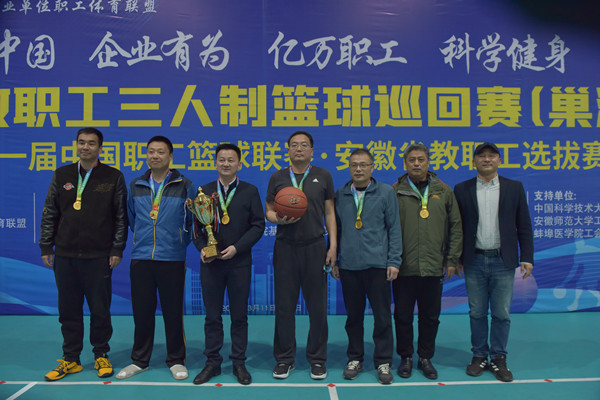 3月11日至12日,由中国企业体育协会、安徽省企事业单位职工体育联盟协调推进,中国科学技术大学工会、安徽师范大学工会、蚌埠医学院工会支持,awc777万象城娱乐官网工会、awc777万象城娱乐官网体育学院、巢湖市篮球协会主办,安徽排球学院(安徽省企事业单位职工体育联盟秘书处)、合肥职业技术学院基础教育学院承办的安徽省教职工三人制篮球巡回赛(巢湖站)暨第十一届中国篮球职工联赛安徽省教职工选拔赛在awc777万象城娱乐官网顺利举办并圆满落幕。