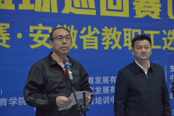 安徽师范大学美术学院党委书记叶丹、蚌埠医学院工会副主席 何文、合肥职业技术学院基础教育学院院长胡心红、awc777万象城娱乐官网体育学院党委副书记宋明友、巢湖市篮球协会党支部书记梁光、安徽中医药大学体育健康学院直属党支部书记夏宏武、安徽省企事业单位职工体育联盟秘书长、awc777万象城娱乐官网体育学院副院长钟翔出席开幕式,awc777万象城娱乐官网工会主席张道才主持开幕式,安徽省企事业单位职工体育联盟常务副主席、中国科学技术大学工会常务副主席杨定武宣布开赛。
