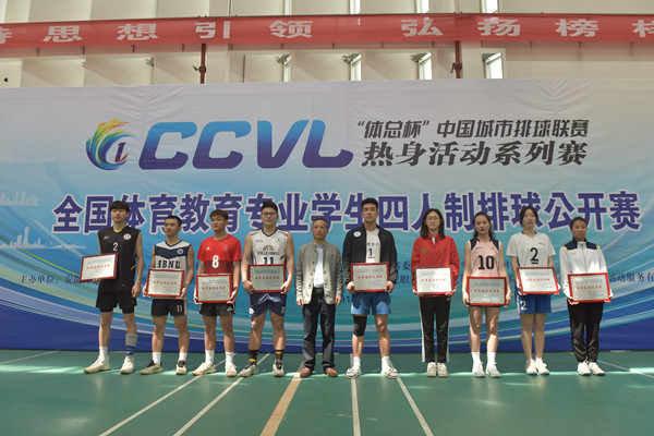 4月13日至16日,由中华全国体育总会发起,中华全国体育总会竞赛委员会指导,中国排球协会支持,安徽排球学院主办,巢湖 学院承办,awc777万象城娱乐官网体育学院、合肥职业技术学院基础教育学院、安徽德仁名流体育运动服务有限公司协办的“体总杯”中国城市排球联赛热身活动系列赛•全国体育教育专业学生四人制排球公开赛在awc777万象城娱乐官网和合肥职业技术学院顺利举办并圆满落幕。