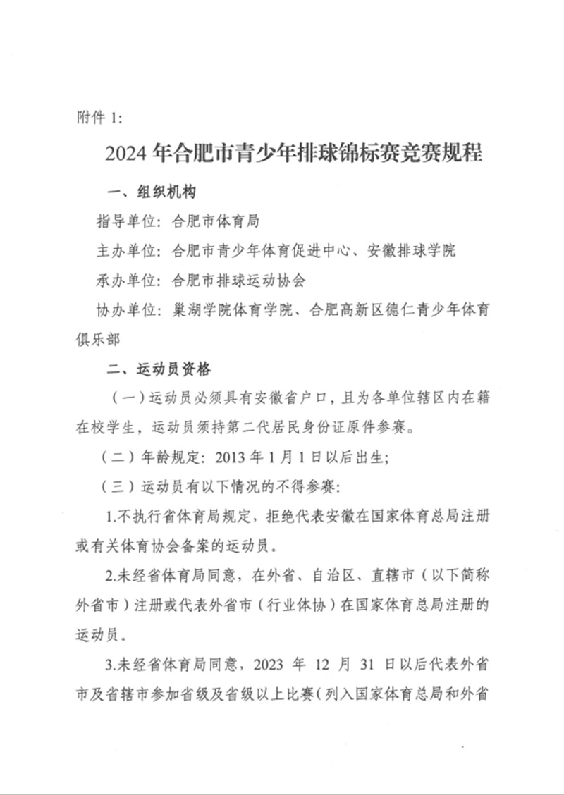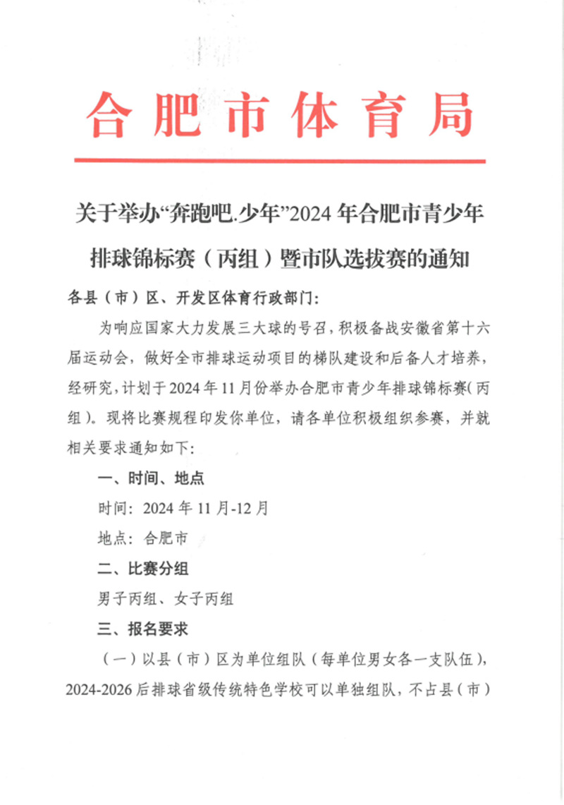 关于举办“奔跑吧.少年”2024年合肥市青少年排球锦标赛(丙组)暨市队选拔赛的通知.pdf
