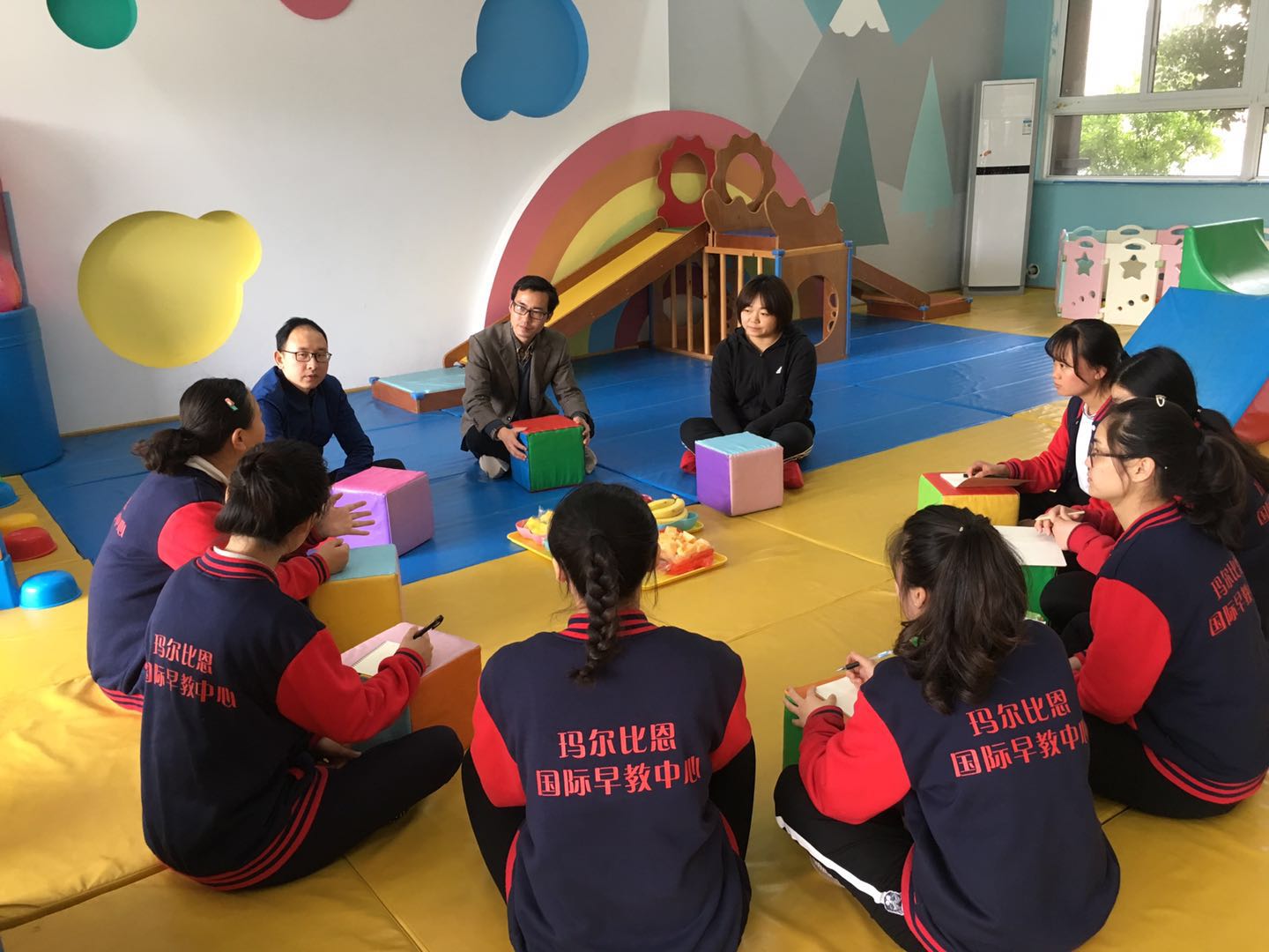 玛尔比恩早教中心教师王亮对挂职教师的前期工作表示了肯定,希望进一步扎实推进与awc777万象城娱乐官网的合作,继续加强相互交流学习。他表示将提供各种便利,做好挂职教师的服务工作,并希望挂职教师要以主人翁精神深入调查研究,为玛尔比恩早教中心的发展提出宝贵的意见。挂职教师分别结合自己的挂职计划,就自己的工作岗位,做了前期的总结,并介绍了后期的工作计划,表示将认真转变角色,主动融入中心,并在中心提供的条件下,努力完成挂职任务、学习经验、物化成果、促进交流、增进友谊、锻炼自己等成效。