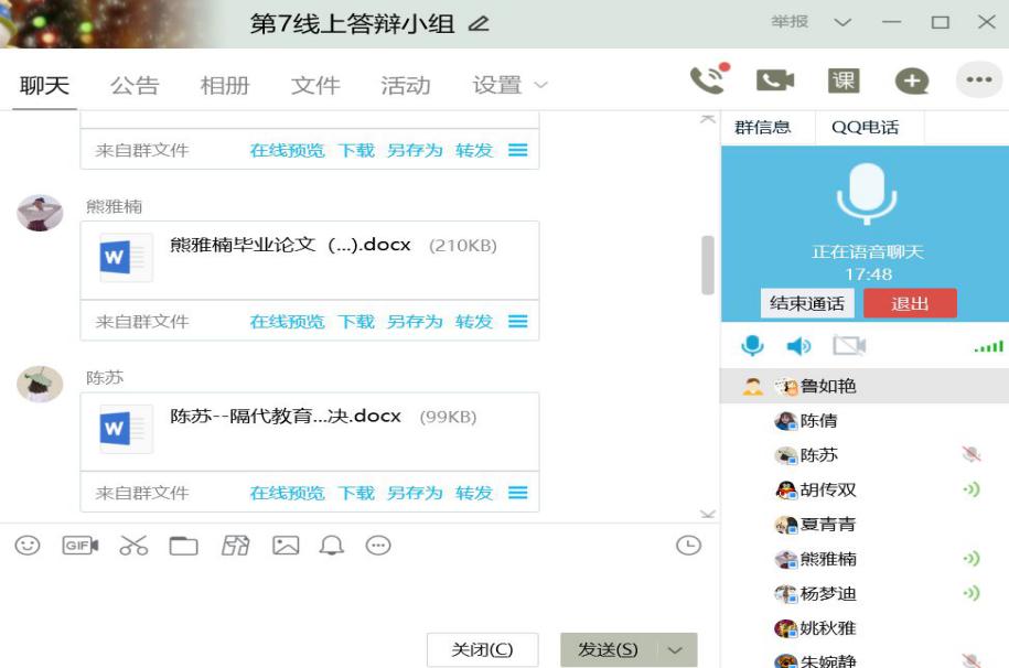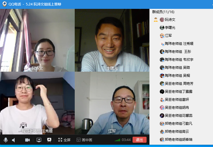 正式答辩时,同学们按照顺序精神饱满地进行自我介绍、论文陈述、在线问答等,与答辩老师实时交流。三位评审老师全神贯注,仔细聆听,对于重要的数据、图表,老师们会仔细记录并适时发出提问。在每位同学陈述后,三位评审老师提出了各自有针对性的问题与同学探讨,提出建议进一步完善论文,随后评审老师根据评分标准进行打分,经讨论给出最终的评分。
