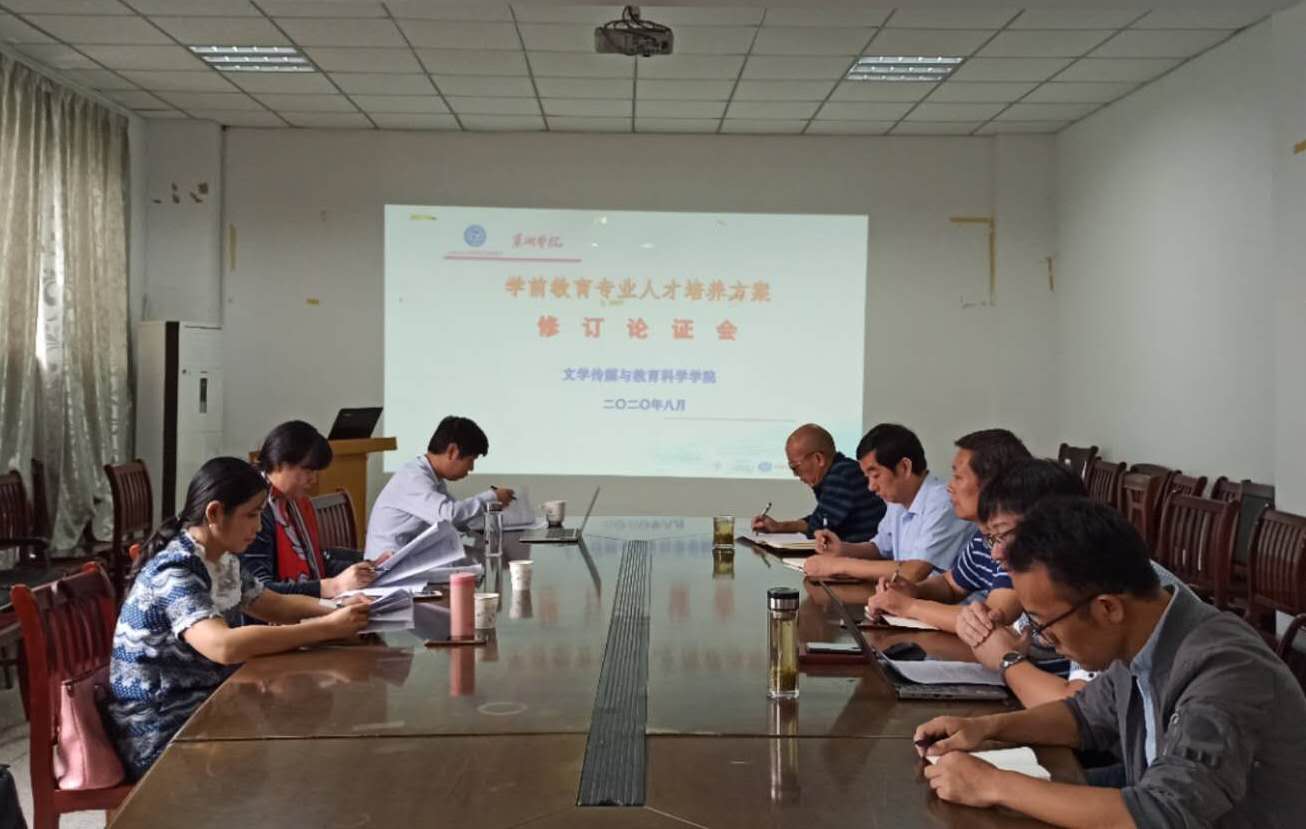 8月23日下午,文教学院在敏行楼会议室召开2020级学前教育专业人才培养方案修订论证会。安庆师范大学教务处副处长、教师教育学院副院长汪洋、巢湖市教体局学前办公室主任周恩霞、巢湖市中心幼儿园总园长於婷婷等校外专家受邀参加论证。文教学院院长方习文、教务处副处长胡传双、学前教育教研室主任甘超、教学科研秘书王宇明出席了会议,会议由文教学院副院长李曙光主持。