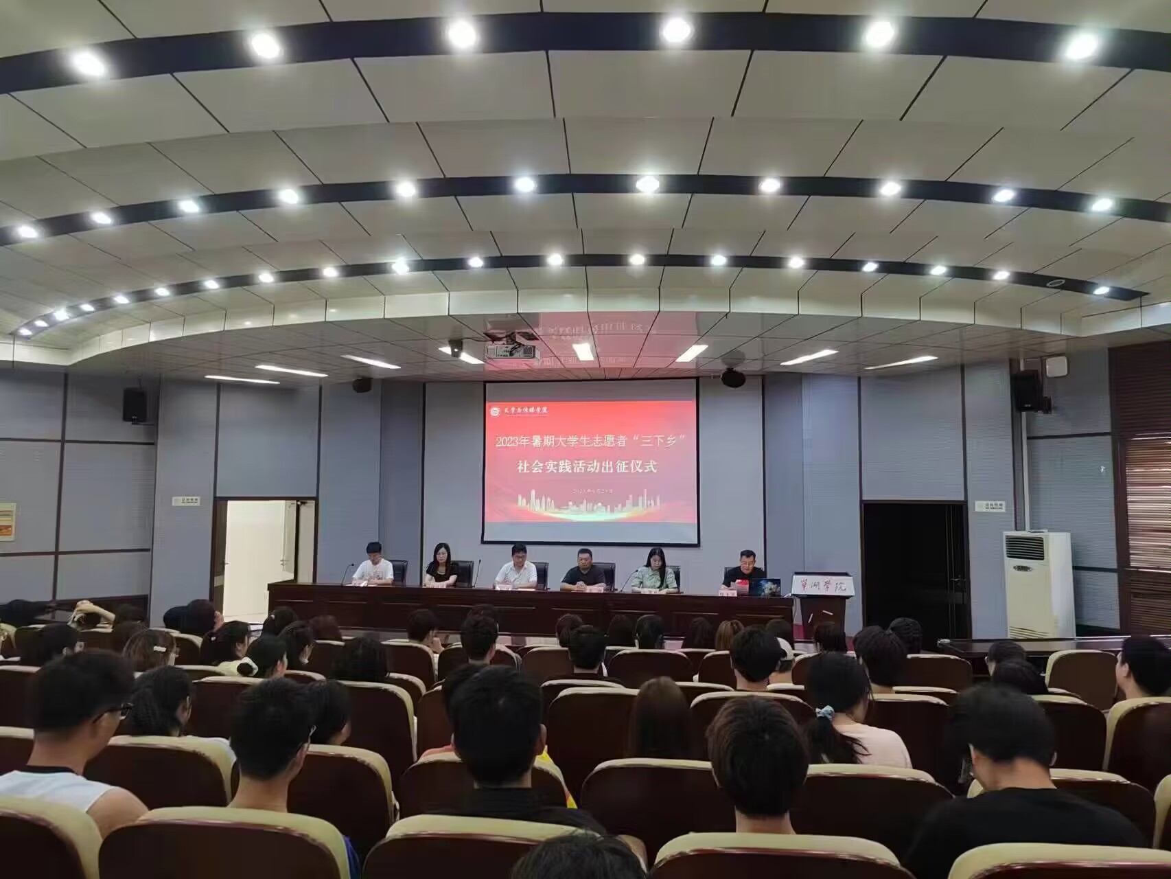 为深入学习贯彻习近平新时代中国特色社会主义思想和党的二十大精神,认真落实团十九大部署。6月29日上午,文传学院在致知楼报告厅举办“学习二十大、永远跟党走 奋进新征程”大学生志愿者暑期“三下乡”社会实践活动出征仪式,活动由院团委负责人程生风老师主持。学院党委副书记孙冰、组织员任冰冰、团委副书记刘偌熙、马克思主义学院吴卿老师、暑期“三下乡”青年志愿者参加了出征仪式。