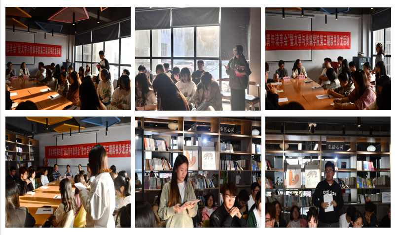 为高质量推进校园文化内涵建设,进一步提高大学生的阅读兴趣,10月11日下午,文学与传媒学院在汤山书苑举办第四期“汤山青年读享会”暨文学与传媒学院第三期读书沙龙活动。本次活动邀请了文学与传媒学院罗祎英博士、马克思主义学院丁贝贝老师担任指导嘉宾,近40名同学现场参加沙龙活动,另外有近600名学生线上参加了此次活动。活动由文传学院团委负责人程生风主持。