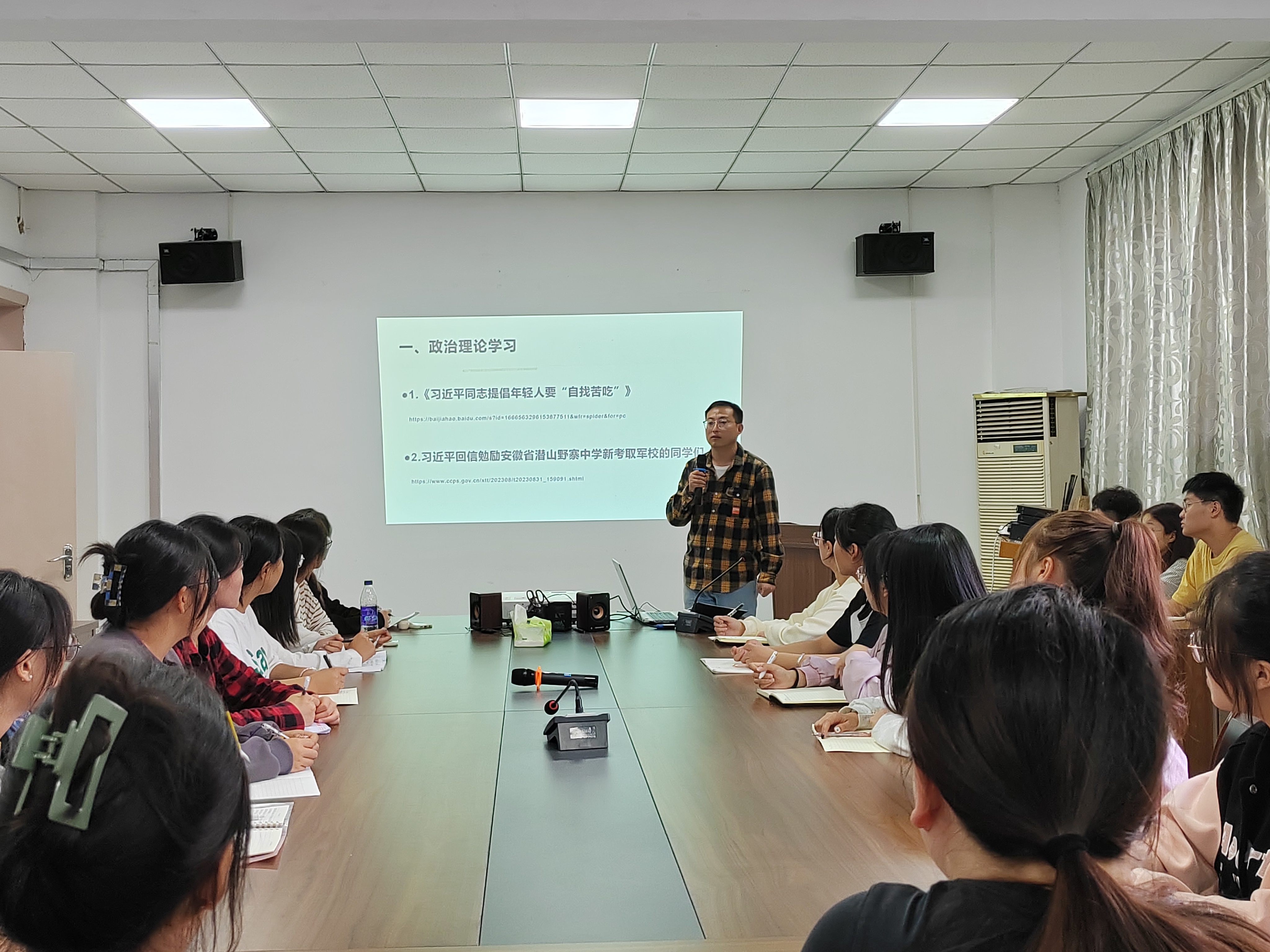 会上,学院各学生组织、社团负责人和新生班团支部书记依次进行自我介绍。程生风老师带领大家共同学习了《习近平同志提倡年轻人要“自找苦吃”》和“习近平回信勉励安徽省潜山野寨中学新考取军校的同学们”,他鼓励同学们要勤学善思,勇于实践。随后,程生风围绕团支部工作制度和团员评议标准等内容讲授主题团课。程生风介绍了本学期团员发展、党员推荐、校运动会、院青马培训班、大学生传媒节和团支部对标定级等重点工作,要求各支部要认真学习文件精神,积极动员,细心落实。程生风鼓励同学们要积极参加校内活动,做多读书、善思考、勤实践的新时代大学生。至此,会议圆满结束。