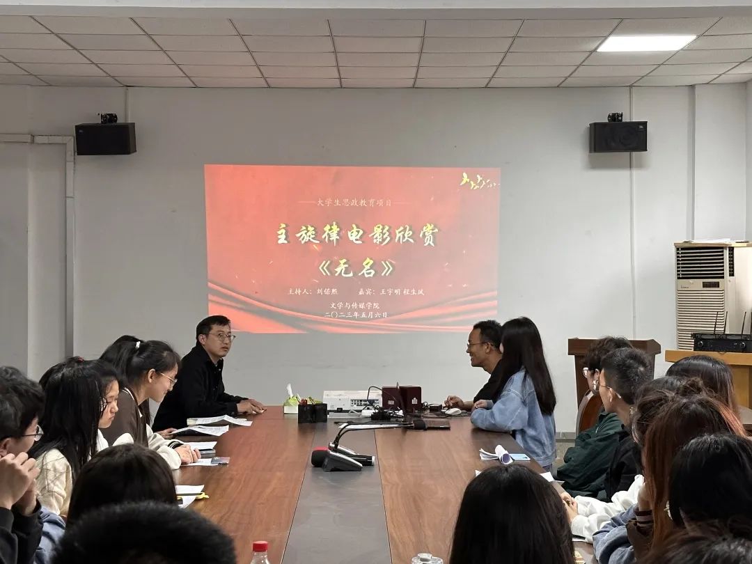 5月6日中午,文传学院在敏行楼大会议室开展大学生思政教育项目暨主旋律电影鉴赏活动。本次活动邀请新媒体系主任王宇明副教授担任点评嘉宾,广播电视学、网络与新媒体等专业40余名同学参加。活动由刘偌熙老师主持。