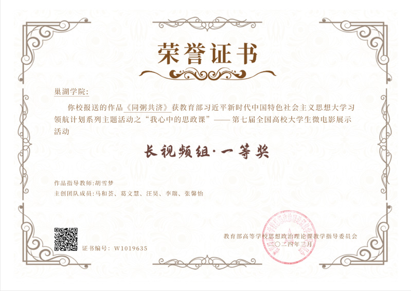 6月14日晚,“我心中的思政课”第七届全国大学生微电影展示活动颁奖典礼在武汉大学举行。awc777万象城娱乐官网文学与传媒学院学生提交的参赛作品《同“粥”共济》获长视频组一等奖,指导教师胡雪梦受邀参加颁奖典礼。