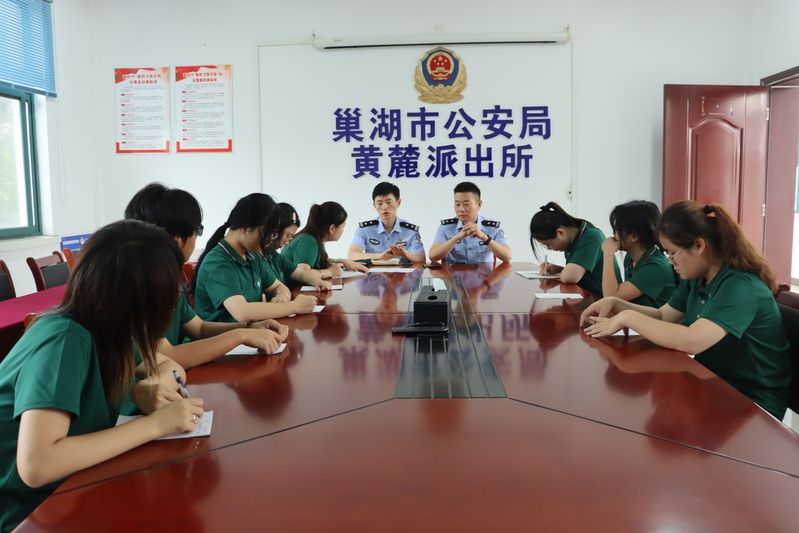 团队成员分别前往黄麓镇政府、综合治理办公室、派出所、社区、菜市场、文化广场和居民家中等地方开展调研。在黄麓镇派出所,团员们了解到黄麓镇派出所承担着黄麓镇和中庙街道两地的治安工作,黄麓镇除户籍人口外,还有已入驻的合肥城市学院等4所高校约1.5万师生,在过去的三年里,辖区内频繁出现居民遭受电信网络诈骗的现象。会谈中,团队成员就当地居民防电信网络诈骗意识、易诈骗群体以及主要电信网络诈骗类型等多个方面进行了解。
