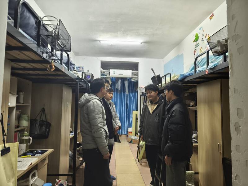 为全面掌握学生开学后的学习与生活情况,学院领导与辅导员深入学生宿舍,与学生交流,了解其假期生活及新学期规划,同时强调宿舍安全、卫生重要性,倡导保持良好生活习惯。(文/陈旭光 图/学院辅导员提供 初审/孙冰 终审/袁凤琴 发布/李陈)