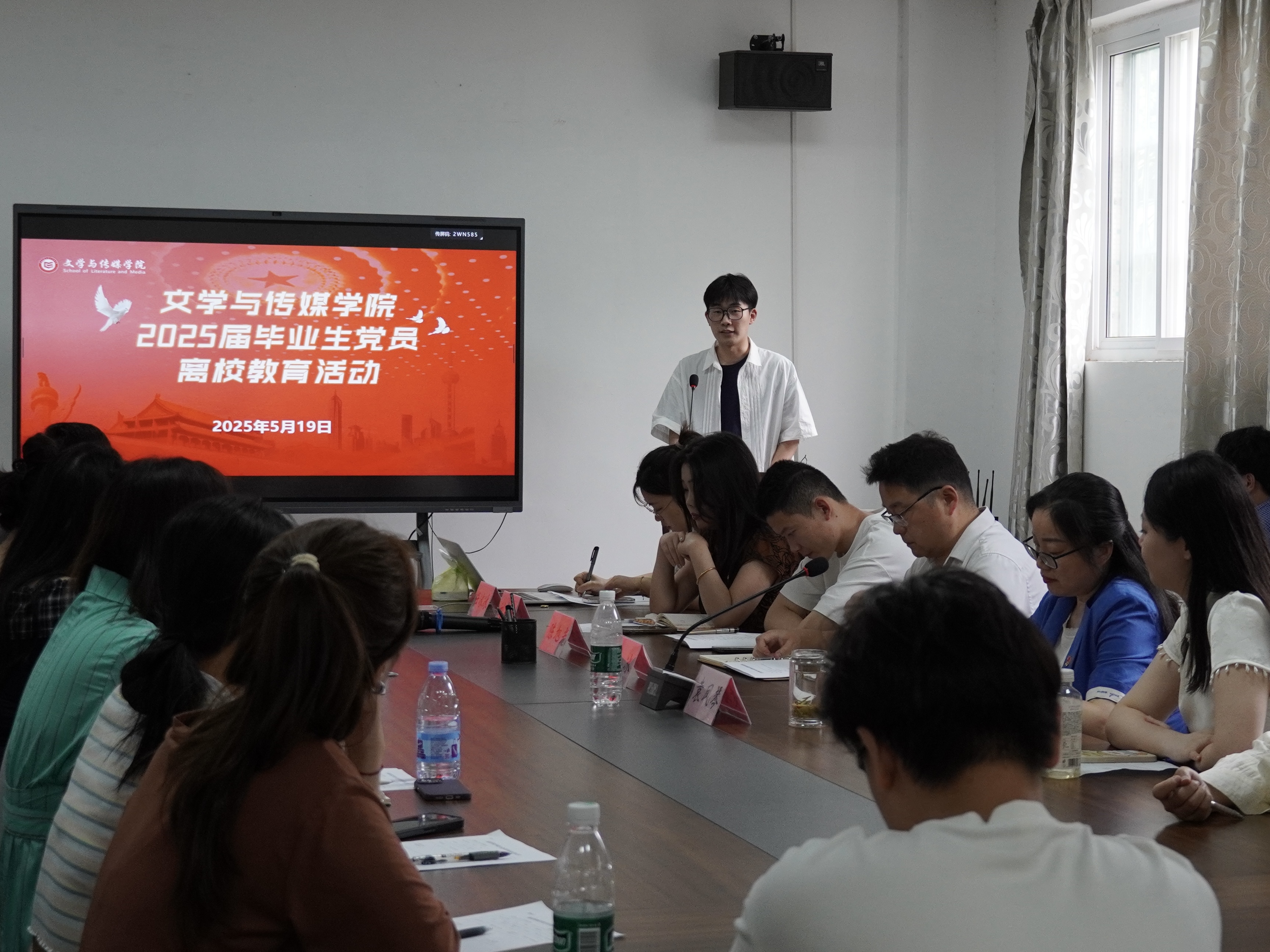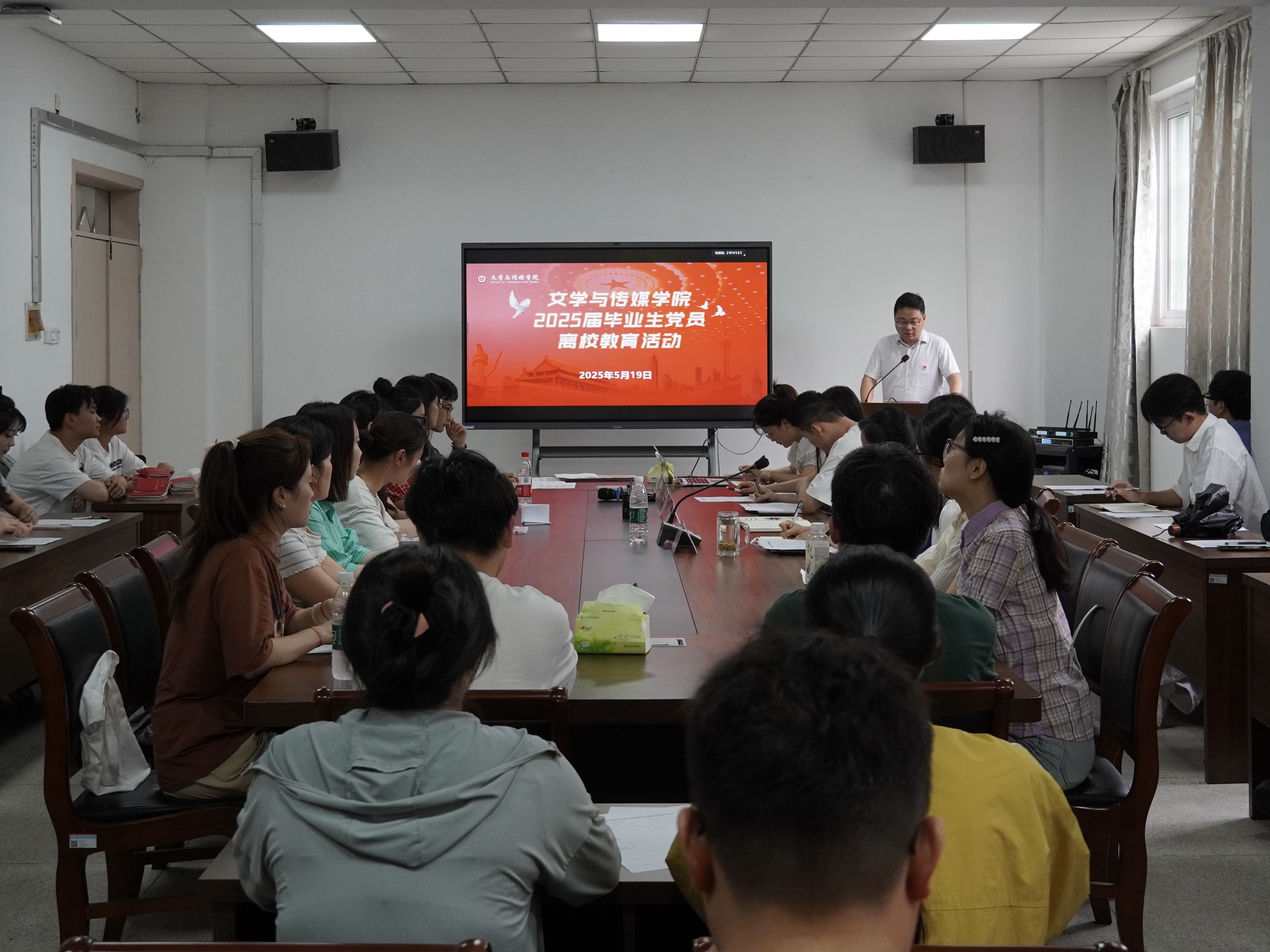 2025年5月19日,文学与传媒学院在敏行楼会议室举办2025届毕业生党员离校教育活动。院党委书记、院党委副书记、各学生支部书记以及全体毕业生党员参与了此次活动,活动由任冰冰主持。