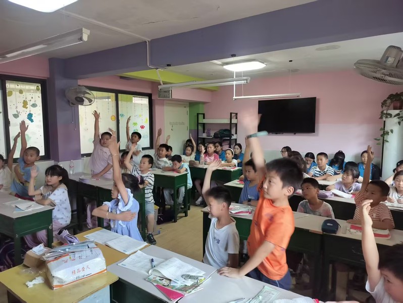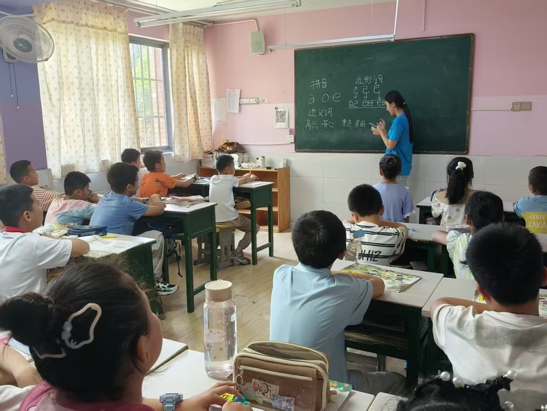 7月8日,针对调研发现的问题,实践团精心设计了“1+N”推普教学模式。“1”是指一个核心课程体系,包括普通话发音训练、日常用语学习等内容;“N”是指多个特色活动模块,如近义词,近形词大闯关游戏等。在陶厂幼托园,团队成员利用多媒体设备,通过动画演示、绕口令比赛等形式,让30余名小学生在轻松愉快的氛围中掌握普通话发音技巧。其中一位三年级的小朋友表示:“老师教的‘普通话发音注意事项’让我明白了如何正确发音,以后我要坚持说好普通话。”