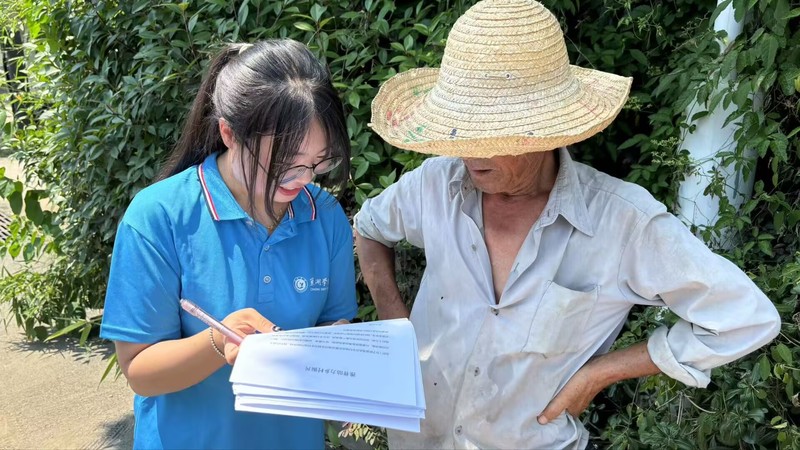 7月7日,实践团采取“点面结合”的调研方式,在镇政府便民服务中心、农贸市场、文化广场等人员密集场所设立调研点,同时深入2个行政村开展入户调查。调研采用“问卷+访谈+观察”三位一体的方法,重点考察不同年龄段、不同职业群体的普通话使用现状。据统计,本次活动共发放问卷150份,回收有效问卷150份,开展深度访谈3余次。调研数据显示,当地40岁以上居民普通话使用率不足30%,青少年群体存在“听得懂但说不准”的现象。