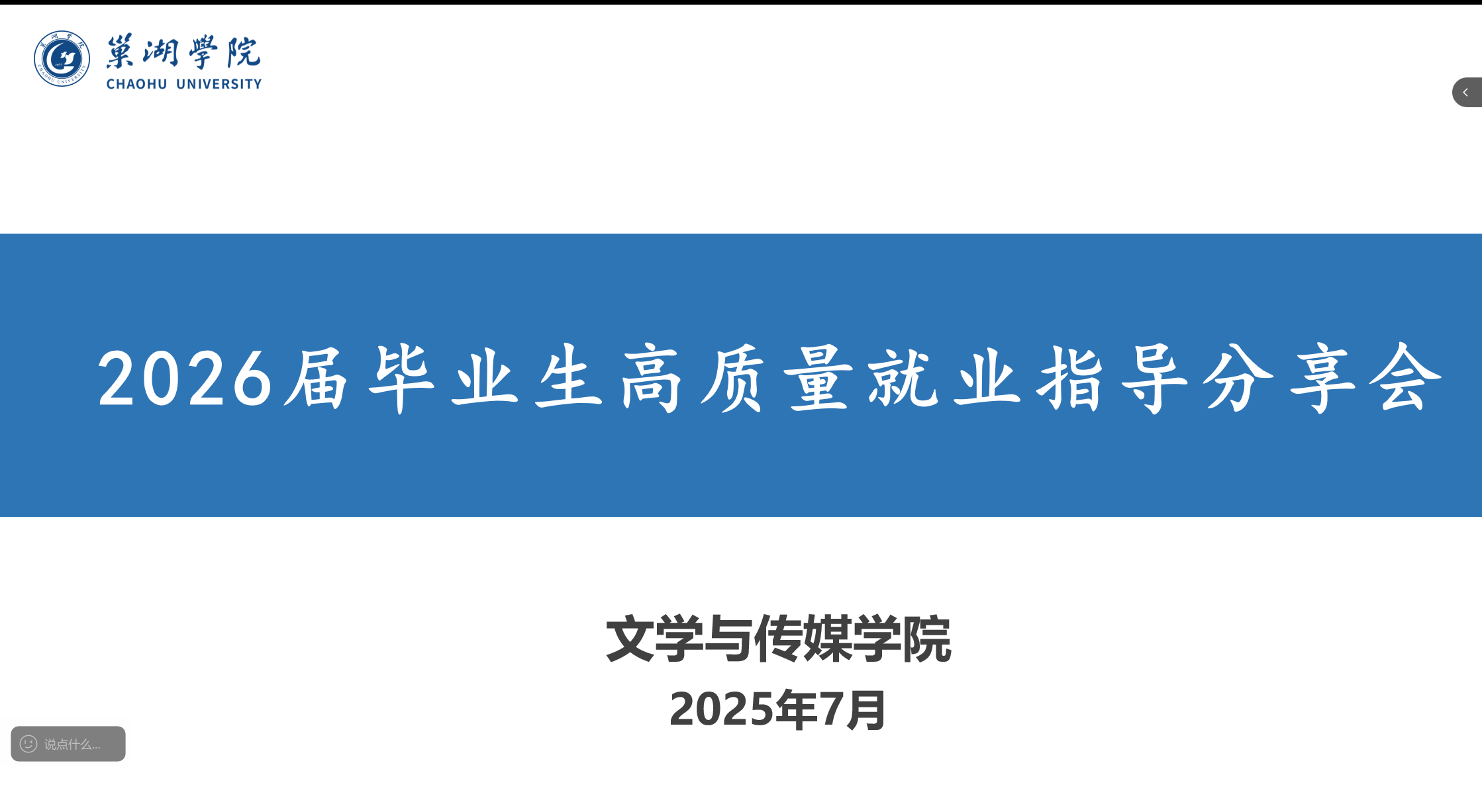 为助力毕业生精准把握就业方向,提升核心竞争力,文学与传媒学院于近日精心组织了两场高质量线上就业指导分享会,分别围绕“考研升学”与“考公考编”两大主题展开。会议特邀多位在相关领域取得突出成绩的2025届毕业生进行经验分享,吸引了近100名学子踊跃参与,获得广泛好评。
